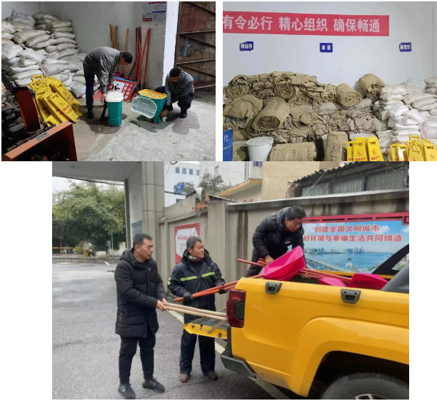 市政管理處第一時間啟動《除雪防凍應急預案》,實行24小時值班制度,確保突發情況快速處置。在人流量密集公共場所及交通要地懸掛警示標語,鋪設防滑麻袋,確保車輛、行人正常通行。各市政養護單位增加凌晨3:00和夜晚23:00兩次應急巡查,發現漢江三橋月亮灣公園上匝道漏水結冰并及時拋灑融雪劑。備足除冰除雪應急物資,儲備鏟雪鍬111把、氈布300平方米、麻袋2700條、融雪劑11.75噸、掃帚59把、警示橫幅123條。同時對車輛設備做好檢修保養,并將部分除雪物資、裝備提前裝車。進一步加強對積水區域、市政橋梁等區域的巡查,對道路橋面結冰情況,及時發現及時處置。