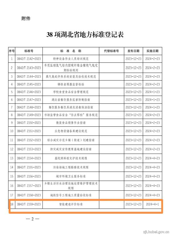 綠色通道立項,多組分布式調研,大量項目數據采集,龍頭企業集中攻關,12月23日,湖北省市場監督管理局公告發布我省《智能建造評價標準》(DB42/T2159-2023)。