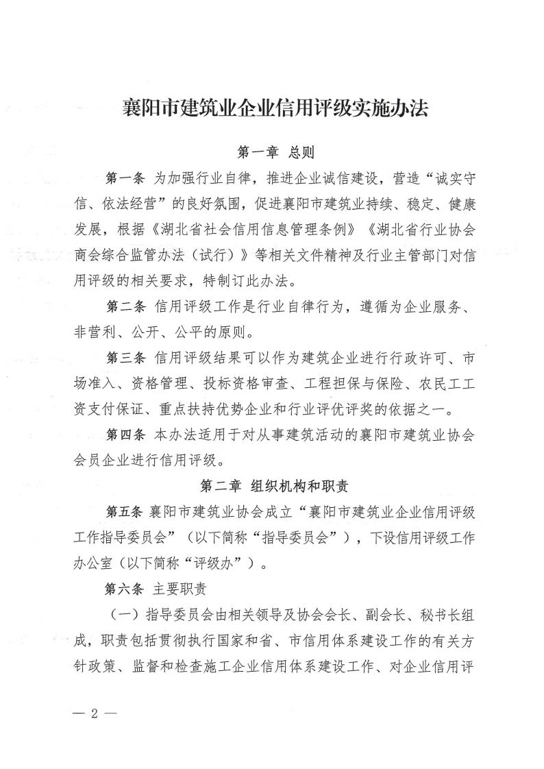 關(guān)于印發(fā)《襄陽(yáng)市建筑業(yè)企業(yè)信用評(píng)級(jí)實(shí)施辦法》的通知