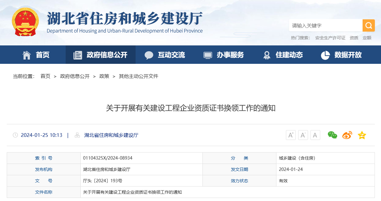 三、企業通過“湖北政務服務網”,向企業注冊地市、州、直管市、林區主管部門提出換證申請;中央在鄂企業、省國資委管理的企業及其控股子公司、在省工商注冊的企業向省住建廳提出換證申請。各市、州、直管市、林區主管部門自受理企業申請之日起,5個工作日內將審查意見匯總報省住建廳。