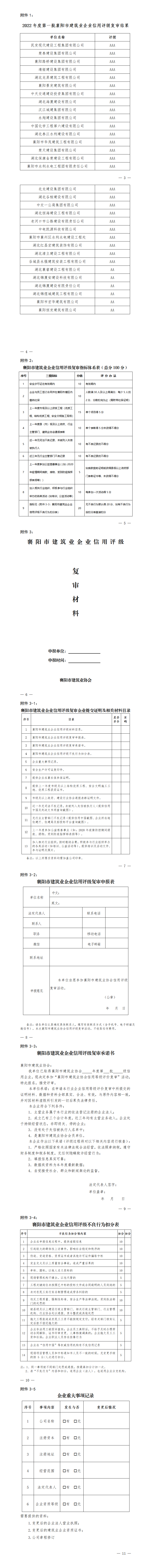 附件1:2022年度第一批襄陽市建筑業(yè)企業(yè)信用評級復(fù)審結(jié)果