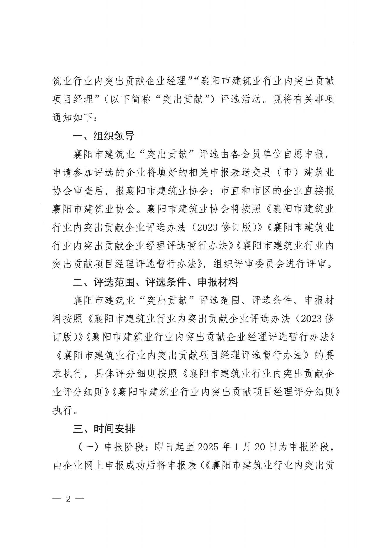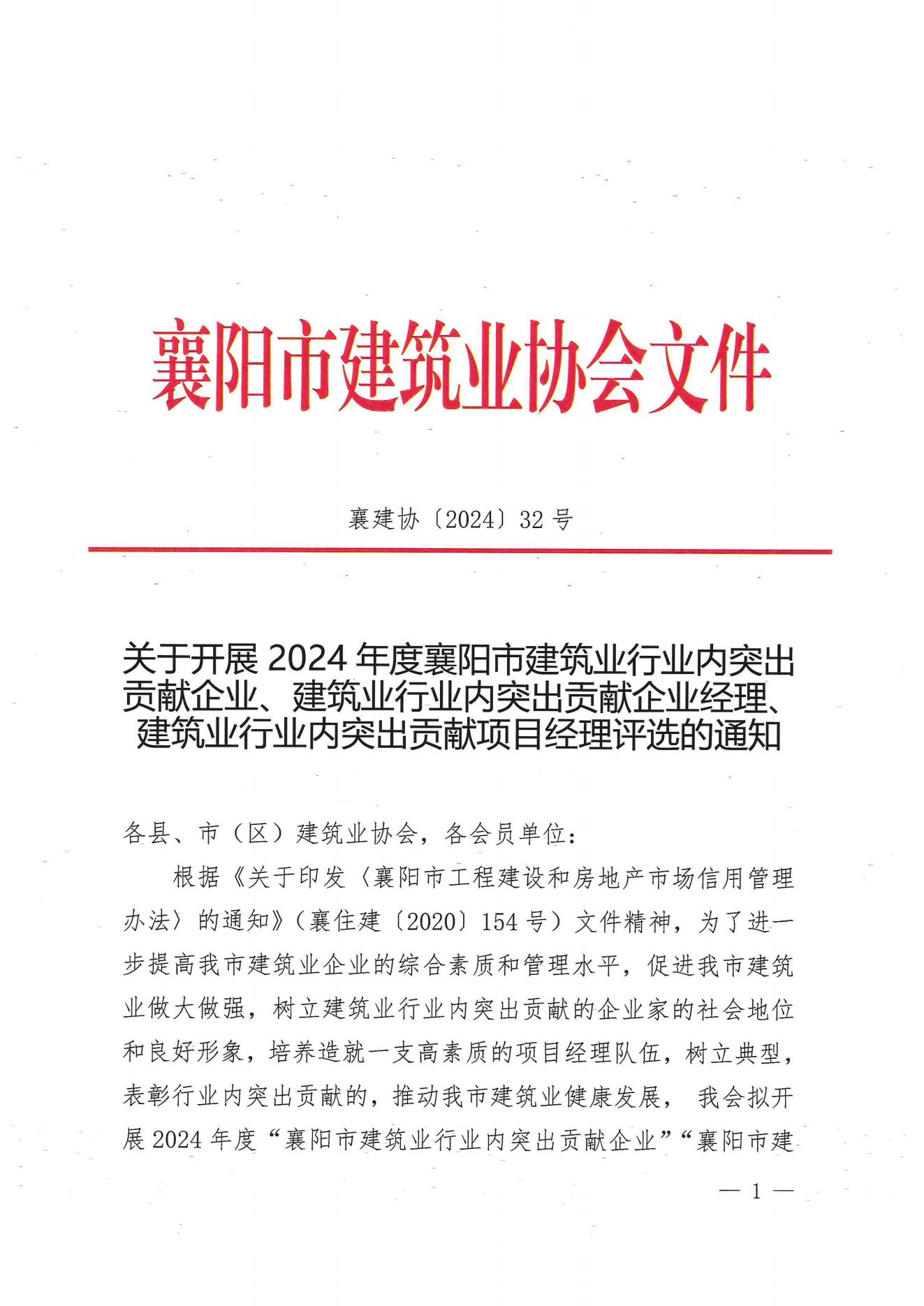 關(guān)于開展2024年度襄陽市建筑業(yè)行業(yè)內(nèi)突出貢獻企業(yè)、建筑業(yè)行業(yè)內(nèi)突出貢獻企業(yè)經(jīng)理、建筑業(yè)行業(yè)內(nèi)突出貢獻項目經(jīng)理評選的通知