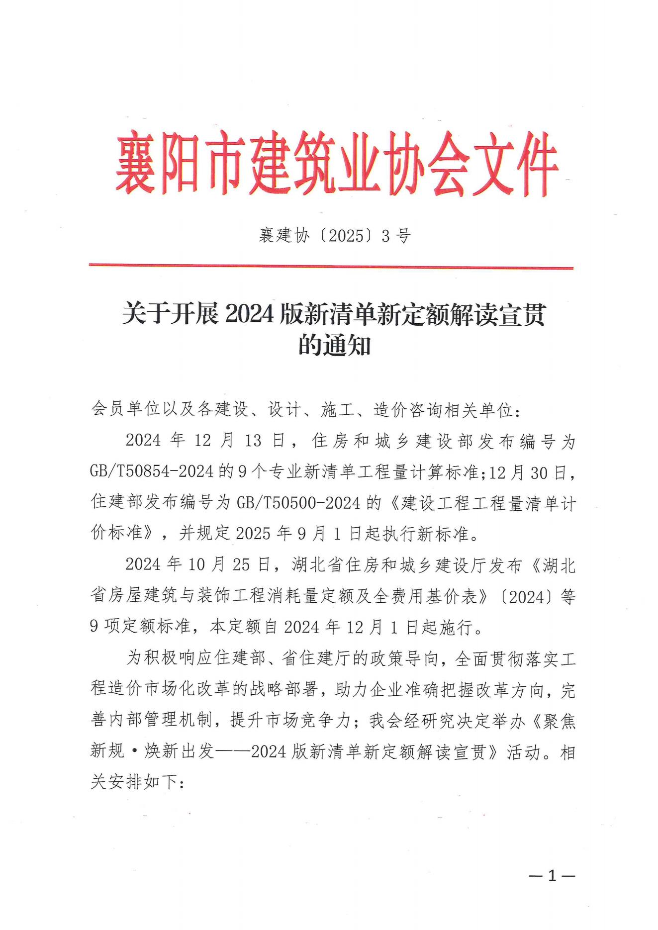 關(guān)于開展2024版新清單新定額解讀宣貫的通知