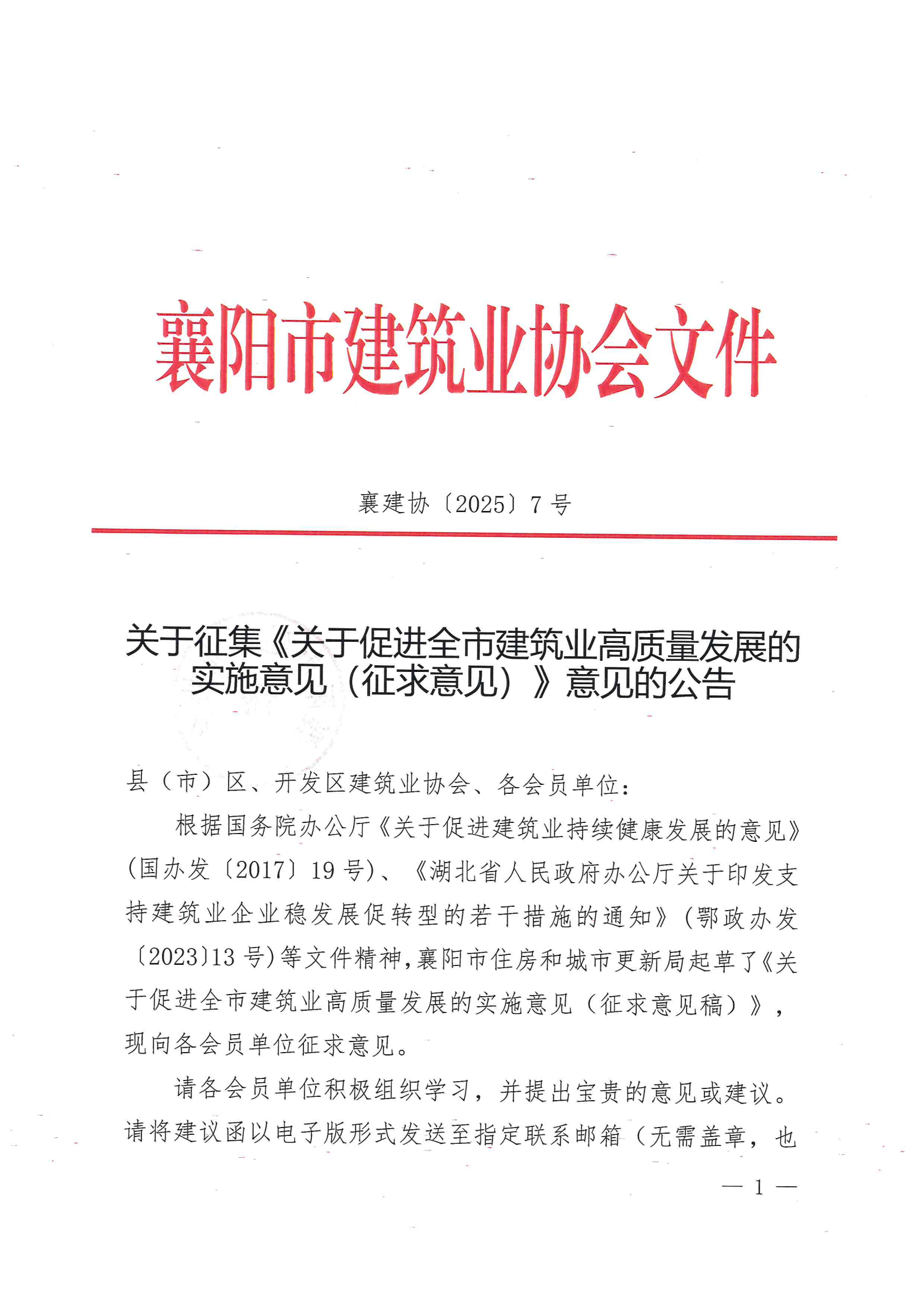 關(guān)于征集《關(guān)于促進全市建筑業(yè)高質(zhì)量發(fā)展的 實施意見(征求意見)》意見的公告