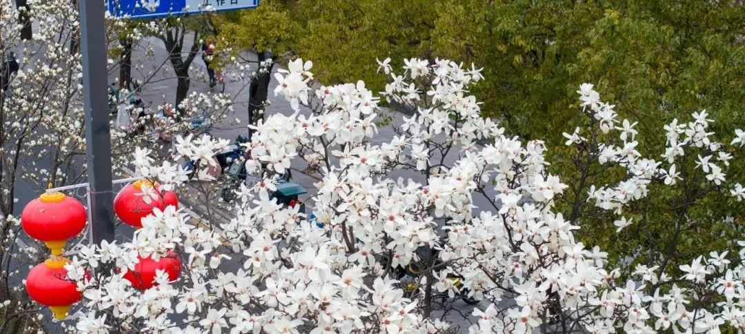 玉蘭盛開,滿樹繁花似雪,清香四溢