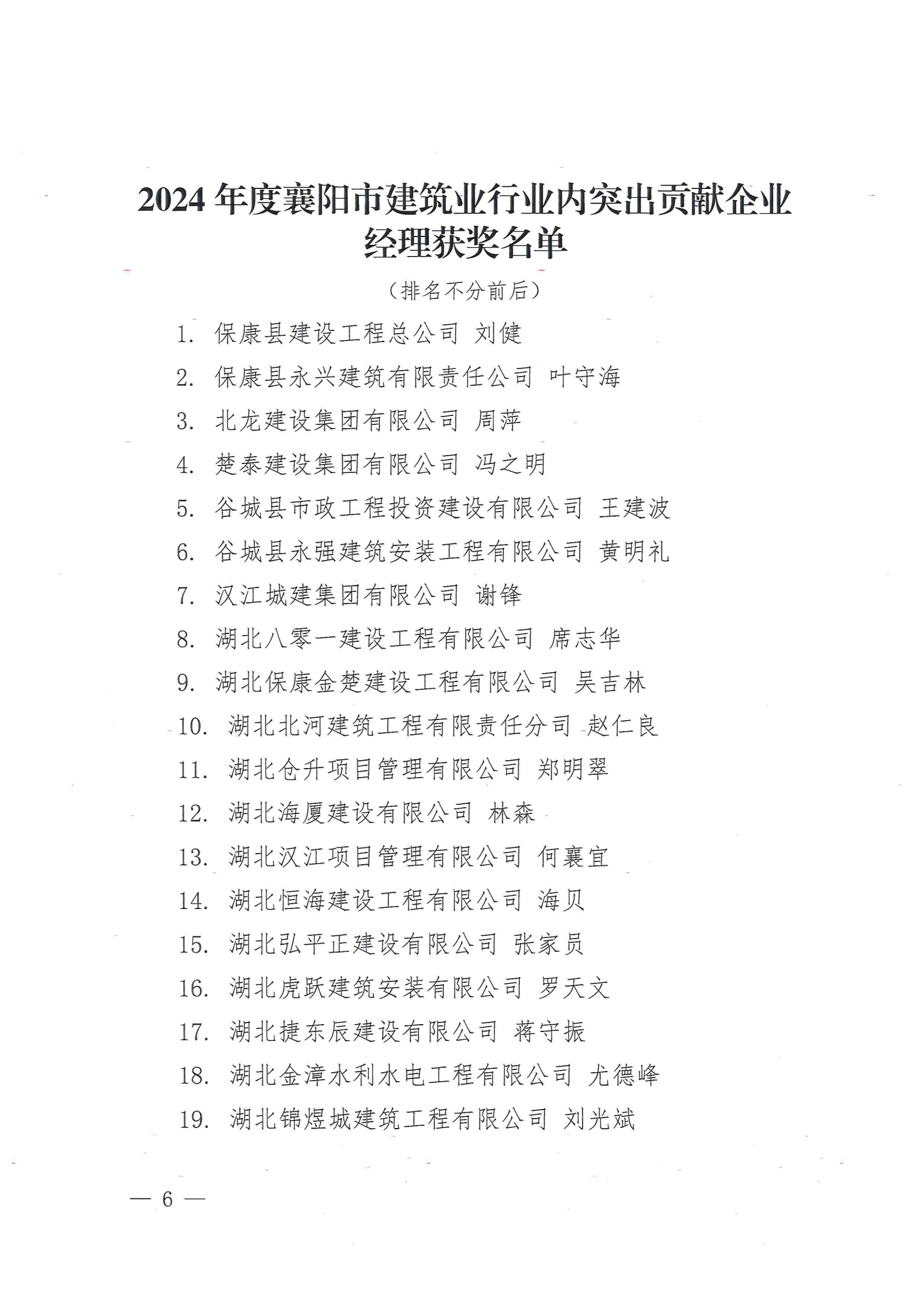 關于2024年度襄陽市建筑業(yè)行業(yè)內(nèi)突出貢獻企業(yè)、建筑業(yè)行業(yè)內(nèi)突出貢獻企業(yè)經(jīng)理、建筑業(yè)行業(yè)內(nèi)突出貢獻項目經(jīng)理評選結(jié)果的公示