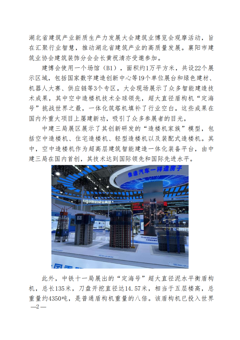 湖北省建筑裝飾協(xié)會組織各地市州裝飾協(xié)會的領(lǐng)導(dǎo)層、秘書處成員、理事單位以及會員代表,于5月30日共同參加了由湖北省住房和城鄉(xiāng)建設(shè)廳、華中科技大學(xué)、中國建筑業(yè)協(xié)會聯(lián)合主辦的湖北省建筑產(chǎn)業(yè)新質(zhì)生產(chǎn)力發(fā)展大會建筑業(yè)博覽會觀摩活動,旨在匯聚行業(yè)智慧,推動湖北省建筑產(chǎn)業(yè)的高質(zhì)量發(fā)展。襄陽市建筑業(yè)協(xié)會建筑裝飾分會會長黃祝清亦受邀參加。